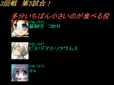 対象指定もない殴り合いだった割に、ビスさんに集中的に攻撃が飛んだのが幸いしましたかね?
