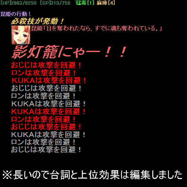 麻痺があるとはいえ、12連続で回避されるとは思いませんでした。 HIT補正の短剣で。
